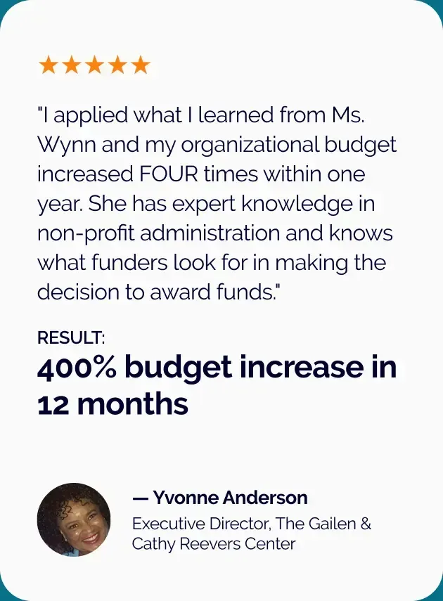 Be honest with yourself: this program requires significant time, effort, and commitment. Most nonprofits need complete organizational overhauls to become funder-ready. If you're looking for a quick fix or aren't prepared to invest 10-15 hours per week for the next 90 days, this program isn't for you. Success stories come from those who treat this like the serious business-building program it is.